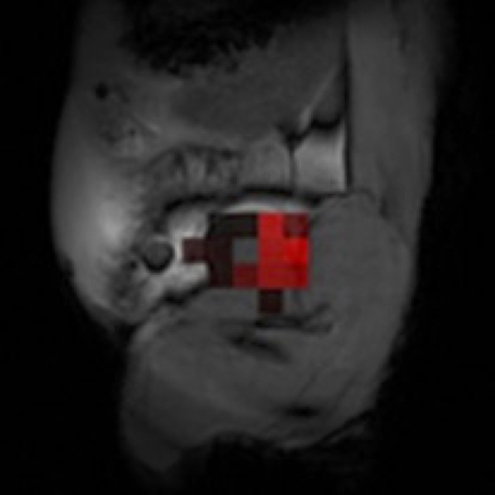 This is a collaborative project with the team « Ingénierie Moléculaire et Matériaux Fonctionnels » from the « Centre Interdisciplinaire de Nanoscience de Marseille », which develops functional supramolecular dendrimers for imaging and therapy of cancer. We aim to quantify the accumulation of the agents in the lesion using 1H-MRI and 19F-MRI.